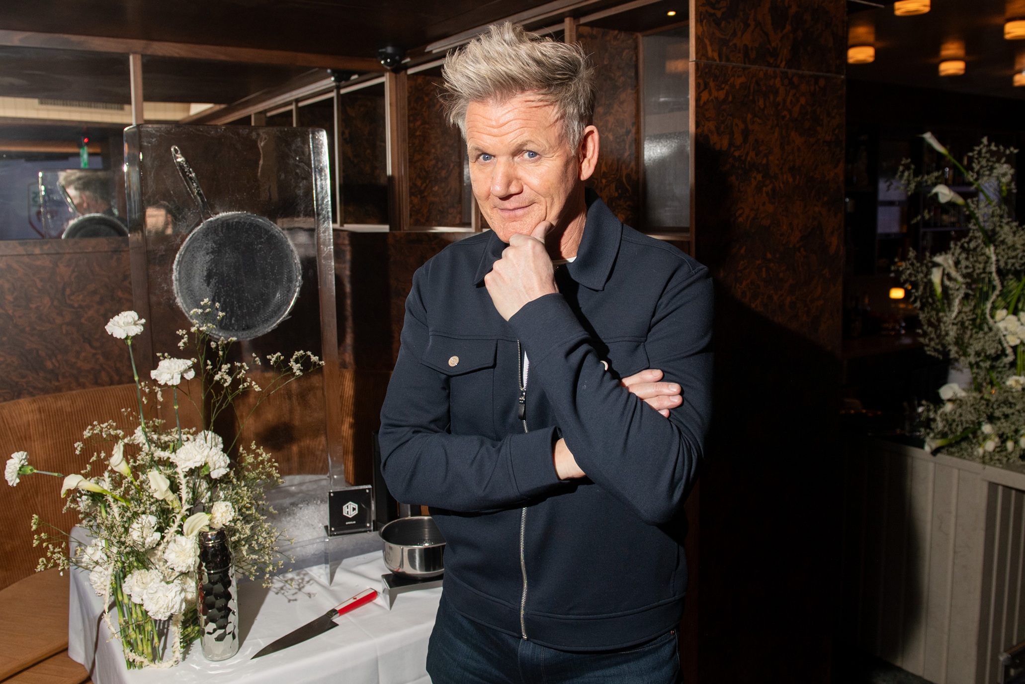 Linny's: Chef Gordon Ramsay at the restaurant with a HexClad chef's knife on the table behind him